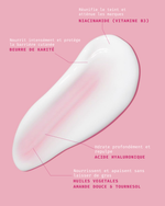 Acide hyaluronique : hydrate intensément, repulpe, aide à réduire les tiraillements.